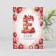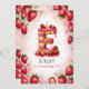 Celebrate a special birthday with this delightful strawberry letter "E" cake invitation! This charming watercolor design features a fun and festive cake shaped as the letter "E," decorated with fresh strawberries, pink icing, and a glowing birthday candle. The soft pink background with scattered strawberries adds a playful touch. Personalise with your child’s name, age, and party details for a one-of-a-kind strawberry-themed birthday celebration. Perfect for kids who love fruit-themed parties or summer birthdays!