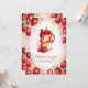 Celebrate a special birthday with this delightful strawberry letter "P" cake invitation! This charming watercolor design features a fun and festive cake shaped as the letter "P" decorated with fresh strawberries, pink icing, and a glowing birthday candle. The soft pink background with scattered strawberries adds a playful touch. Personalise with your child’s name, age, and party details for a one-of-a-kind strawberry-themed birthday celebration. Perfect for kids who love fruit-themed parties or summer birthdays!