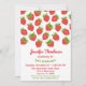 An adorable strawberry birthday invitation featuring tons of red strawberries with red and green text on a white background. A fun birthday invite perfect for kids or adults: 1st, 2nd, 3rd, 4th, 5th, 6th, 7th, 8th, 9th, 10th, 11th, 12th, 13, 14th, 15th, 16th, 17th or 18th, 21st, 30th, 35th, 40th, 45th, 50th, 55th, 60th, 65th, 70th, 75th, 80th, 85, 90th.