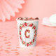 Celebrate in style with this charming strawberry-themed birthday paper cup! Featuring a whimsical watercolor illustration of the letter "C" as a delicious strawberry cake, this design is perfect for kids’ parties and summer celebrations. The cake is adorned with fresh strawberries, creamy pink frosting, and a glowing birthday candle, adding a festive touch. Surrounding the cake, a beautiful border of hand-painted strawberries and green leaves creates a lovely frame. The design is mirrored on both sides of the cup for a seamless look. A perfect choice for a personalised and sweet birthday party theme!