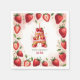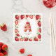 Add a sweet and festive touch to your celebration with this strawberry-themed birthday napkin! Featuring a whimsical watercolor illustration of the letter "A" as a delicious strawberry cake, this charming design is perfect for kids’ birthdays and summer parties. The cake is topped with fresh strawberries, pink frosting, and a glowing birthday candle. Surrounding the cake, an elegant square frame of hand-painted strawberries and delicate green leaves enhances the design. The phrase “Happy Birthday” and a customisable name make it a unique and personal party accessory. A perfect addition to a strawberry-themed celebration!