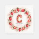 Add a sweet and festive touch to your celebration with this strawberry-themed birthday napkin! Featuring a whimsical watercolor illustration of the letter "C" as a delicious strawberry cake, this charming design is perfect for kids’ birthdays and summer parties. The cake is topped with fresh strawberries, pink frosting, and a glowing birthday candle. Surrounding the cake, an elegant circular frame of hand-painted strawberries and delicate green leaves enhances the design. The phrase “Happy Birthday” and a customisable name make it a unique and personal party accessory. A perfect addition to a strawberry-themed celebration!