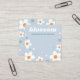 Square earring jewellery display card featuring white strawberry blossom on a dusty blue background and your company or design name in a retro font.