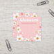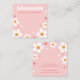 Square earring jewellery display card featuring white strawberry blossom on a pink background and your company or design name in a retro font.