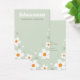 Earring jewellery display card featuring white strawberry blossom on a light green background and your company or design name in a retro font.