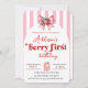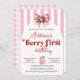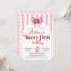 Strawberry & Bow 1st Birthday with Photo Invitation