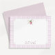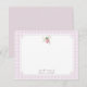 Charming personalised note card featuring a delicate strawberry bow illustration and soft pink gingham border. This elegant stationery card is perfect for writing personal notes, baby announcements, or nursery themed correspondence. Customise the name to create a sweet and timeless personalised note card.