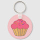Faux embroidery print cupcake. Custom keychains. Pink background version. Decor idea.