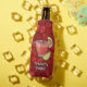 A glass of strawberry daiquiri with garnish. Seamless red background. Custom text.