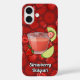 A glass of strawberry daiquiri with garnish. Seamless red background. Custom text.