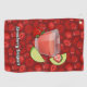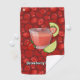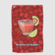 A glass of strawberry daiquiri with garnish. Seamless red background. Custom text.