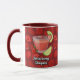 A glass of strawberry daiquiri with garnish. Seamless red background. Custom text on both sides.