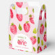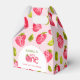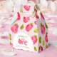Berry first birthday favour box. Personalised Strawberry Berry First Birthday favour box for baby girl turning sweet ONE. Watercolor strawberries, leaves and white floral accents. Berry 1st birthday party supplies.