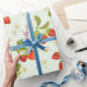 Strawberry Fruit, Leaves and Flowers Wrapping Paper