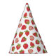 Summer strawberry fruit pattern paper party hat. Perfect for girls birthday parties and summer celebrations. Original art from artists own illustrations. Please contact me for further customisation and special requests. (c) Zoe Chapman Design