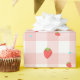 This adorable product is part of the "Farmer's Market Gingham" Collection from the artist Hayley Sauce. It's a light pink gingham with whimsical little strawberries and some light blue dots peppered in for interest. Perfect for babies, kids, or even a cottage core loving adult.