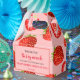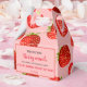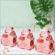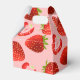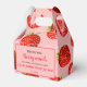 Adorable strawberry-themed birthday party favour box with a watercolor painting of the juicy red fruit of summer. "Thank you very much for attending my party," the message reads. Ideal for a summertime girl's party.