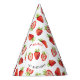 Cute berry theme party hat featuring watercolor illustration of strawberries.