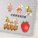Strawberry gnome collection. The vinyl sticker is 8" x 8" in size. Choose any of the smaller sizes to the 14" x 14" size with this design. Two types of finishes. Personalise this with your name and change the images if you like. Customise it further to change the font or more changes. Ideal vinyl stickers for luggage, cars, lockers, notebooks, lockers, skateboards, helmets, water bottles, lunch boxes, and laptops, for your office, travel, or school. Use these on anything you desire.