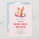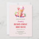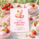 Strawberryes and ice cream for a Berry First Birthday party. Personalise and add your party details. Light pink background.