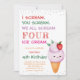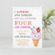 Strawberry Ice Cream Cone 4th Birthday Party Invitation