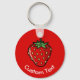 Illustration of a strawberry. Custom background colour. Custom text on both sides.