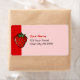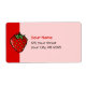Illustration of a strawberry. Custom background colour. Custom text fields for name and address.