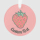 Illustration of a strawberry. Custom background colour. Custom text on both sides.