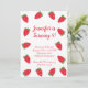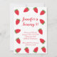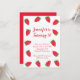 Bright red strawberries ith green splatter background invitation, can be personalised for birthday's baby showers or any special occassion!