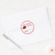 These personalised canning stickers will fit on top of your glass jam, jelly, and preserves jar lids. They have an image of a strawberry with a red chequered border pattern.