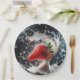 A vivid ripe strawberry splashes dynamically through swirling milk, creating an energetic blend of movement and colour
