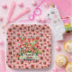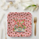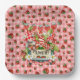 A Cute Strawberry Pink Check Patterned With Gnomes Picnic Square Paper Plate