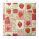Vintage strawberry patchwork pattern ceramic tile with red gingham, soft florals, and cosy cottage charm. A warm, cheerful design ideal for strawberry lovers, farmhouse decor fans, and cottagecore enthusiasts. Perfect as a thoughtful gift for bakers, gardeners, moms, or anyone who loves retro kitchen style—especially for spring, summer, picnics, and farmhouse-inspired occasions.