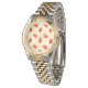The watch is very nice, the picture is great and the watch looks like quality. The only problem I am having with it is that it is a little too large, and I also can't figure out how to open the clasp. No directions came with it. Very good. The printing is perfect and the watch keeps good time.