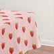 This fun summery pattern features bright red strawberries on a pink background. The background colour can be changed with the design tool.