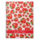 Destei's cartoon illustration of a red strawberry fruit as a pattern. The background color is light pink and there is a personalizable text area for the title of the notebook.