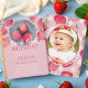 This adorable and fun strawberry-themed first birthday invitation is designed for that special first birthday. It showcases original artwork of whimsical strawberries in a charming retro style, set against a vibrant red and pink colour scheme. The reverse side features a delightful strawberry and flower pattern, and there’s space to add a lovely picture. It’s easily customisable for your special event.