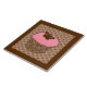 Ceramic tile - Strawberry Pink Frosted Cupcake topped with a chocolate butterfly in a decorative, chocolate brown damask patterned cupcake wrapper, on a brown, tan and coral pink Chinese scalloped background