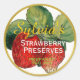 A custom label suitable for any strawberry preparation. All text is customisable - change the creator's name, the product title, and the packaging date to suit your needs.