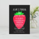 Strawberry Red Black Custom 1st Birthday Party Invitation