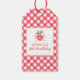 Strawberry Red Picnic Plaid Gift Tag, customisable text.