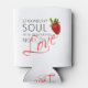 Red strawberry berry with green leaves and a text Strawberry soul with dominating note of love. One of a kind t-shirts, prints and gifts for everyone. Love and romance theme. Square format products and souvenirs.