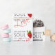 Red strawberry berry with green leaves and a text Strawberry soul with dominating note of love. One of a kind t-shirts, prints and gifts for everyone. Love and romance theme. Horizontal or landscape orientated products and souvenirs.