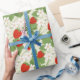 strawberry, strawberry, flowers, fruit ,stylish, ,wrapping paper,gift wrapping, red, green, white,