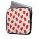 This playful and vibrant pattern features bright red strawberries scattered diagonally across a soft pink and white striped background. The combination of fruit and pastel tones gives it a fresh.
