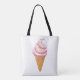 Strawberry sundae in waffle cone with topping tote bag