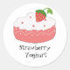 A yummy dish of creamy strawberry yoghurt with whole strawberry on top.