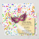 Confetti on the back of this party invitation card. Party streamers and confetti on the front of the card. A face mask and a note to come to the party. Celebrate the New Year with this fun New Year's Eve party invitation. Fill in the information for your party gathering.
