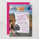 A Street Art baby Shower announcement on a scroll on a brick wall with a Polka Dot Expecting mummy and her polka-dot pram