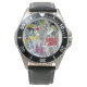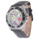 Watch, Stainless Steel Black Leather